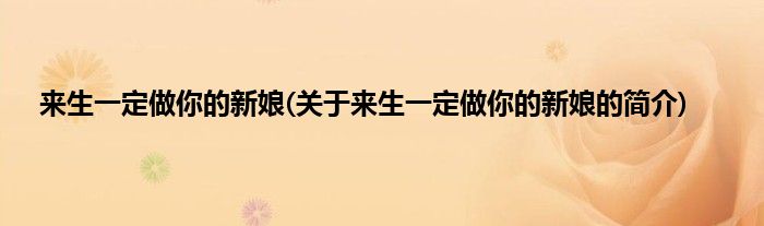 本文关于来生一定做你的新娘的简介就讲解完毕,希望对大家有所帮助。
