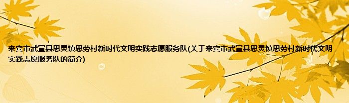 来宾市武宣县思灵镇思劳村新时代文明实践志愿服务队(关于来宾市武宣县思灵镇思劳村新时代文明实践志愿服务队的简介)