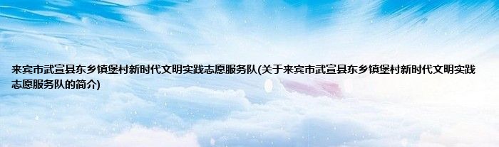 本文关于来宾市武宣县东乡镇堡村新时代文明实践志愿服务队的简介就讲解完毕,希望对大家有所帮助。