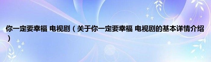 本文关于你一定要幸福 电视剧的基本详情介绍就讲解完毕,希望对大家有所帮助。