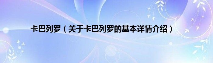 本文关于卡巴列罗的基本详情介绍就讲解完毕,希望对大家有所帮助。