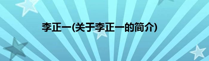 本文关于李正一的简介就讲解完毕,希望对大家有所帮助。