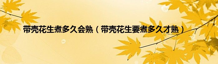 大家好,小科来为大家解答以上问题。带壳花生煮多久会熟,带壳花生要煮多久才熟很多人还不知道,现在让我们一起来看看吧!