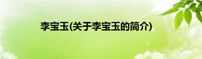 本文关于李宝玉的简介就讲解完毕,希望对大家有所帮助。
