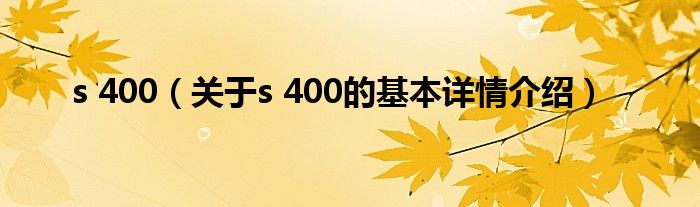 本文关于s 400的基本详情介绍就讲解完毕,希望对大家有所帮助。