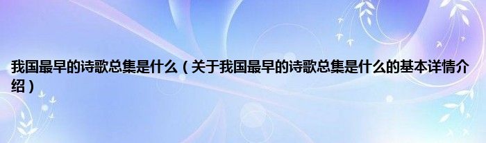 本文关于我国最早的诗歌总集是什么的基本详情介绍就讲解完毕,希望对大家有所帮助。