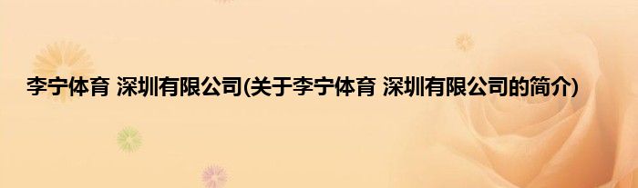 大家好,李宁体育 深圳有限公司,关于李宁体育 深圳有限公司的简介很多人还不知道,现在让我们一起来看看吧!