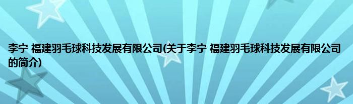 大家好,李宁 福建羽毛球科技发展有限公司,关于李宁 福建羽毛球科技发展有限公司的简介很多人还不知道,现在让我们一起来看看吧!