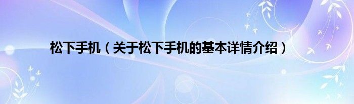 本文关于松下手机的基本详情介绍就讲解完毕,希望对大家有所帮助。