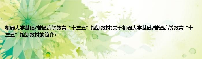 本文关于机器人学基础/普通高等教育“十三五”规划教材的简介就讲解完毕,希望对大家有所帮助。