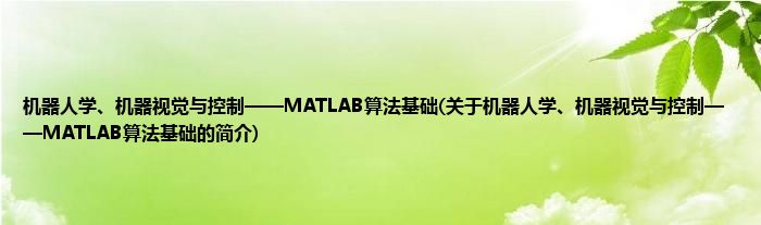 本文关于机器人学、机器视觉与控制——MATLAB算法基础的简介就讲解完毕,希望对大家有所帮助。