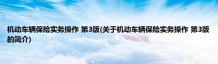 本文关于机动车辆保险实务操作 第3版的简介就讲解完毕,希望对大家有所帮助。