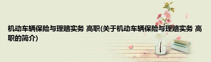 本文关于机动车辆保险与理赔实务 高职的简介就讲解完毕,希望对大家有所帮助。