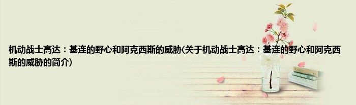 本文关于机动战士高达:基连的野心和阿克西斯的威胁的简介就讲解完毕,希望对大家有所帮助。