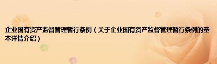 本文关于企业国有资产监督管理暂行条例的基本详情介绍就讲解完毕,希望对大家有所帮助。