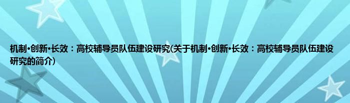 机制·创新·长效:高校辅导员队伍建设研究(关于机制·创新·长效:高校辅导员队伍建设研究的简介)