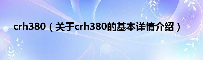 本文关于crh380的基本详情介绍就讲解完毕,希望对大家有所帮助。