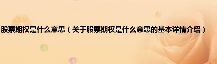 本文关于股票期权是什么意思的基本详情介绍就讲解完毕,希望对大家有所帮助。