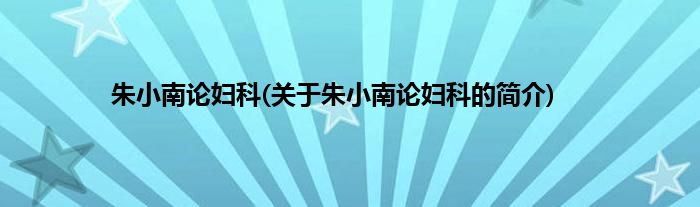 本文关于朱小南论妇科的简介就讲解完毕,希望对大家有所帮助。