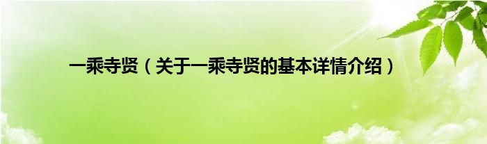 本文关于一乘寺贤的基本详情介绍就讲解完毕,希望对大家有所帮助。
