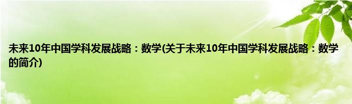 本文关于未来10年中国学科发展战略:数学的简介就讲解完毕,希望对大家有所帮助。