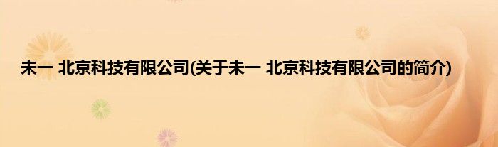 大家好,未一 北京科技有限公司,关于未一 北京科技有限公司的简介很多人还不知道,现在让我们一起来看看吧!