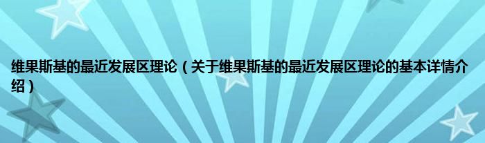 本文关于维果斯基的最近发展区理论的基本详情介绍就讲解完毕,希望对大家有所帮助。