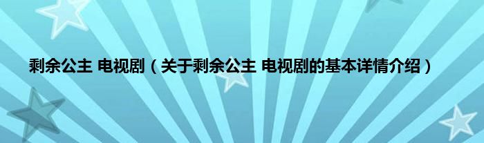 本文关于剩余公主 电视剧的基本详情介绍就讲解完毕,希望对大家有所帮助。