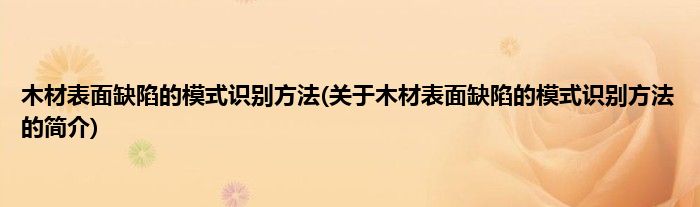 本文关于木材表面缺陷的模式识别方法的简介就讲解完毕,希望对大家有所帮助。
