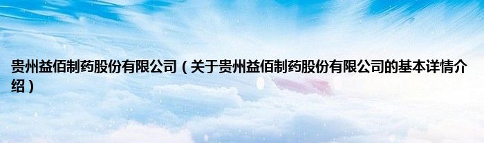 本文关于贵州益佰制药股份有限公司的基本详情介绍就讲解完毕,希望对大家有所帮助。