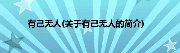 本文关于有己无人的简介就讲解完毕,希望对大家有所帮助。