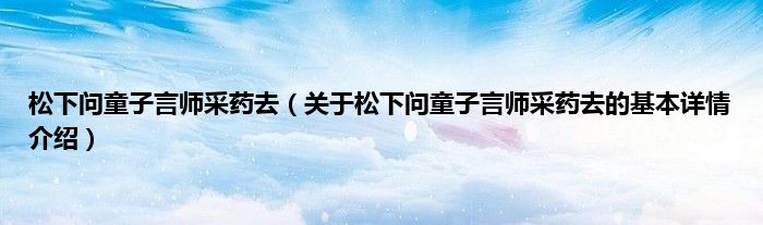 本文关于松下问童子言师采药去的基本详情介绍就讲解完毕,希望对大家有所帮助。