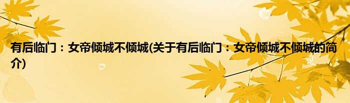 有后临门:女帝倾城不倾城(关于有后临门:女帝倾城不倾城的简介)