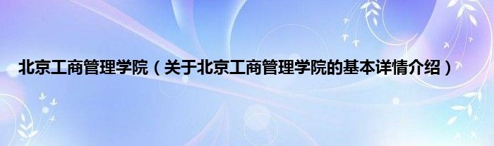 本文关于北京工商管理学院的基本详情介绍就讲解完毕,希望对大家有所帮助。