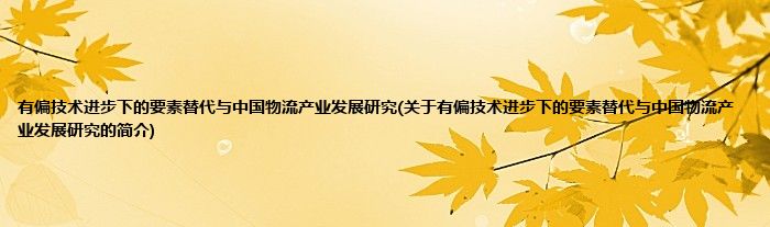 本文关于有偏技术进步下的要素替代与中国物流产业发展研究的简介就讲解完毕,希望对大家有所帮助。