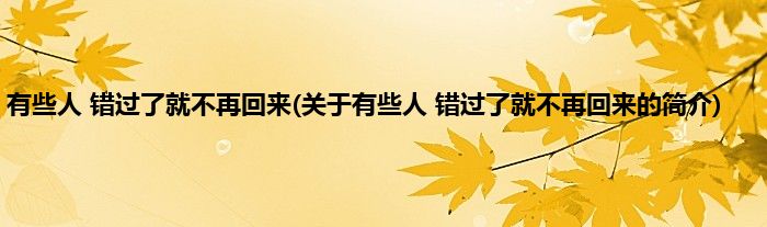 本文关于有些人,错过了就不再回来的简介就讲解完毕,希望对大家有所帮助。