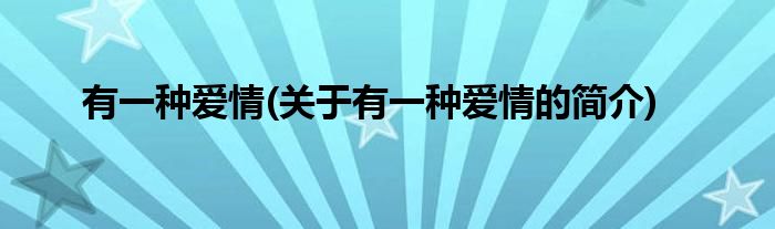 本文关于有一种爱情的简介就讲解完毕,希望对大家有所帮助。