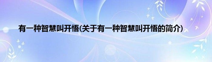 大家好,有一种智慧叫开悟,关于有一种智慧叫开悟的简介很多人还不知道,现在让我们一起来看看吧!