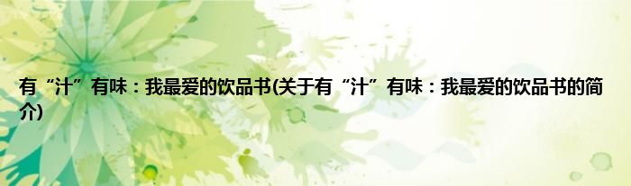 大家好,有“汁”有味:我最爱的饮品书,关于有“汁”有味:我最爱的饮品书的简介很多人还不知道,现在让我们一起来看看吧!