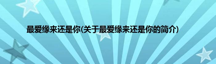 大家好,最爱缘来还是你,关于最爱缘来还是你的简介很多人还不知道,现在让我们一起来看看吧!