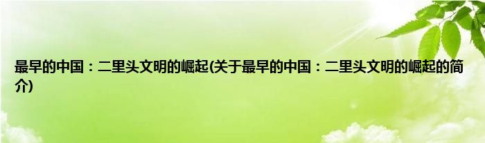 最早的中国:二里头文明的崛起(关于最早的中国:二里头文明的崛起的简介)