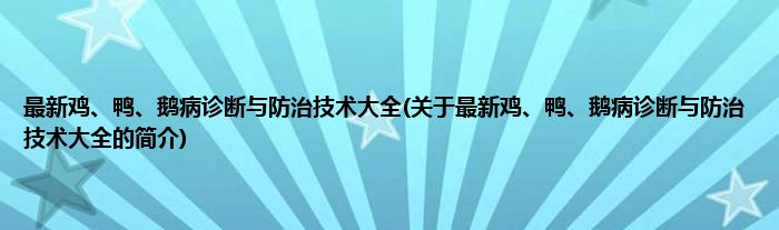 本文关于最新鸡、鸭、鹅病诊断与防治技术大全的简介就讲解完毕,希望对大家有所帮助。