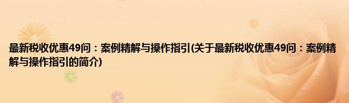 本文关于最新税收优惠49问:案例精解与操作指引的简介就讲解完毕,希望对大家有所帮助。