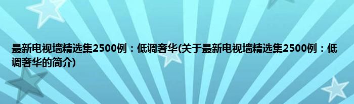 本文关于最新电视墙精选集2500例:低调奢华的简介就讲解完毕,希望对大家有所帮助。