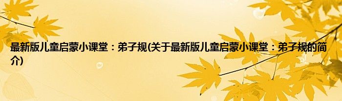大家好,最新版儿童启蒙小课堂:弟子规,关于最新版儿童启蒙小课堂:弟子规的简介很多人还不知道,现在让我们一起来看看吧!