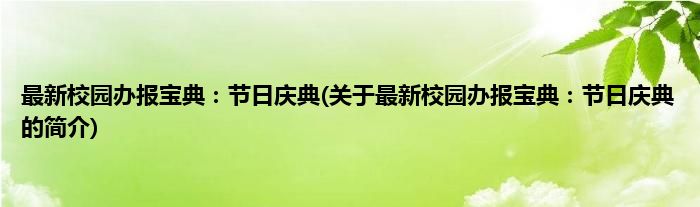 本文关于最新校园办报宝典:节日庆典的简介就讲解完毕,希望对大家有所帮助。