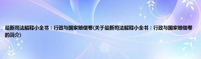 本文关于最新司法解释小全书:行政与国家赔偿卷的简介就讲解完毕,希望对大家有所帮助。