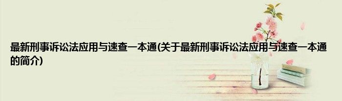 本文关于最新刑事诉讼法应用与速查一本通的简介就讲解完毕,希望对大家有所帮助。