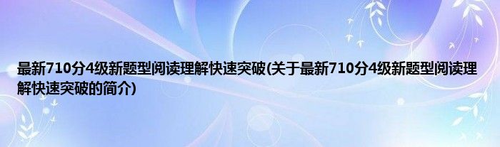 本文关于最新710分4级新题型阅读理解快速突破的简介就讲解完毕,希望对大家有所帮助。