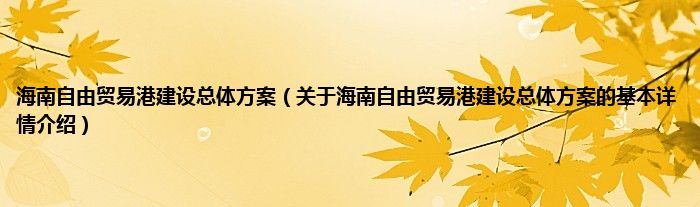 本文关于海南自由贸易港建设总体方案的基本详情介绍就讲解完毕,希望对大家有所帮助。